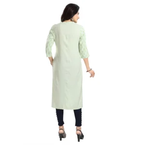 Generic Women’s 3/4th Sleeve Viscose Blend Tunic Long Kurti (Green)