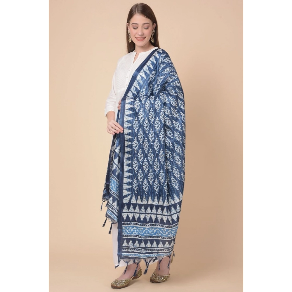Generic Women’s Art Silk Printed Dupatta (Blue, Length: 2.25 to 2.50 Mtr)