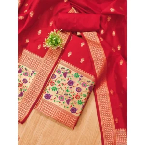 Generic Women’s Banarasi Silk Printed Unstitched Salwar Suit Material With Dupatta (Red, 3Mtrs)
