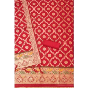 Generic Women’s Banarasi Silk Printed Unstitched Salwar Suit Material With Dupatta (Red, 3Mtrs)