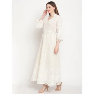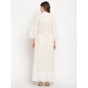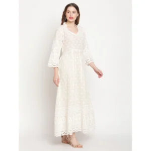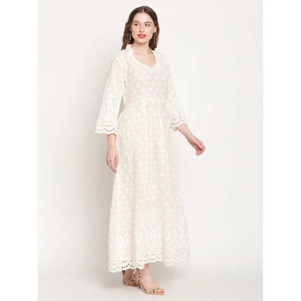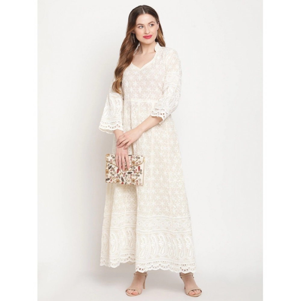 Generic Women’s Casual 3/4th Sleeve Embroidered Cotton Kurti (White)