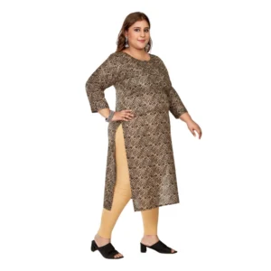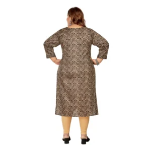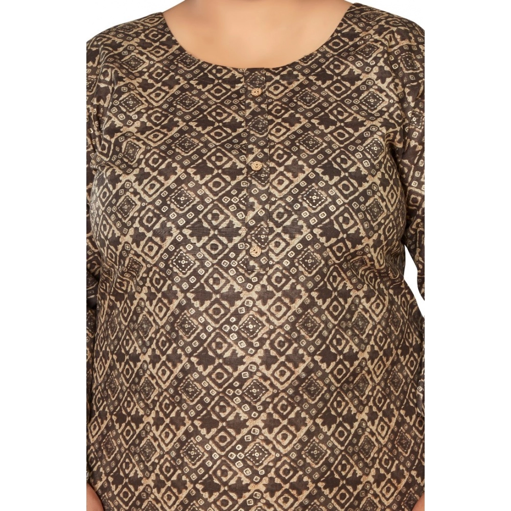 Generic Women’s Casual 3/4th Sleeve Golden Foil Printed Capsule Cotton Straight Kurti (Brown)