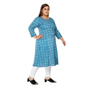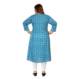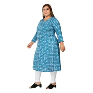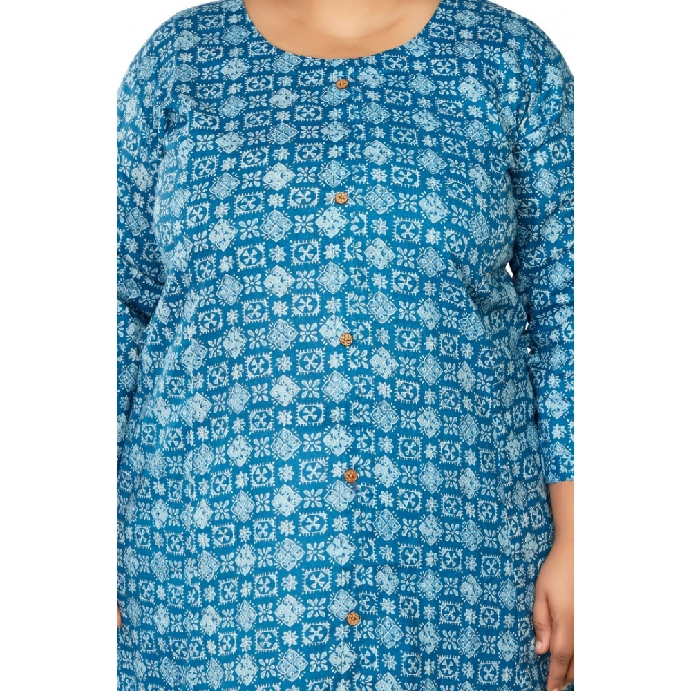 Generic Women’s Casual 3/4th Sleeve Regular Printed Pure Cotton Prince Cut A-Line Kurti (Blue)