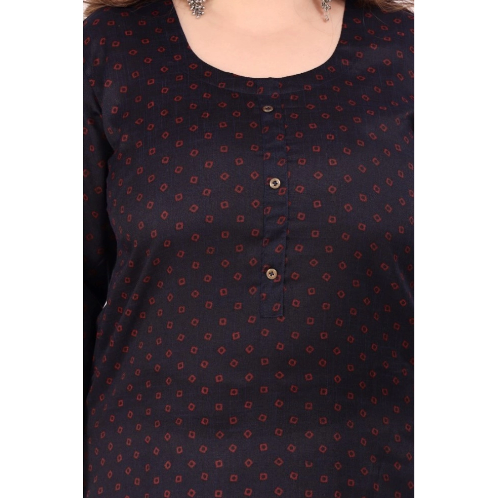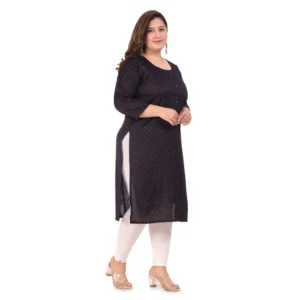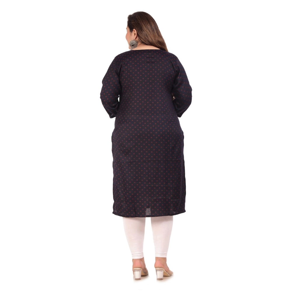 Generic Women’s Office wear Bandhni Printed Capsule Straight Kurti (Navy Blue)