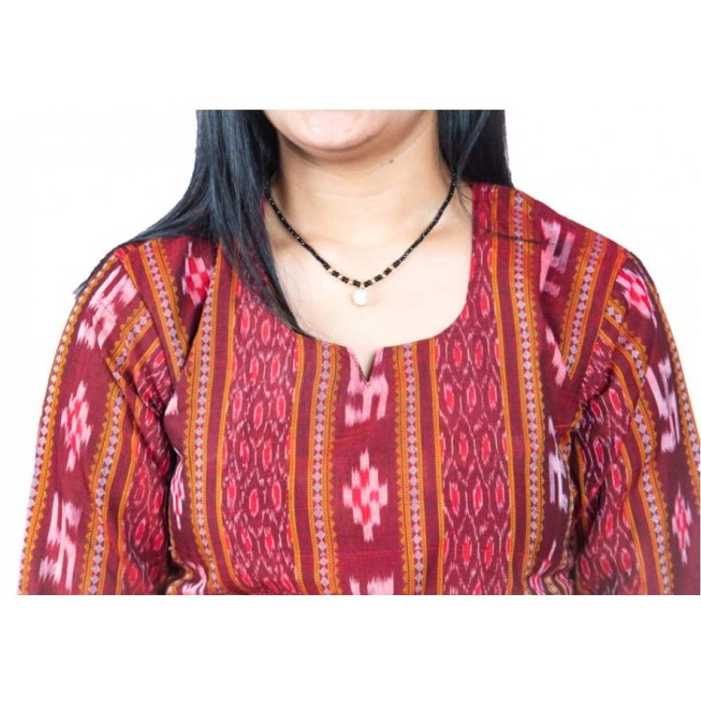 Generic Women’s Sambalpuri Certified Handloom Pure Cotton Straight Kurti (Maroon)