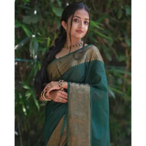 Women’s Soft Lichi Silk Solid Saree With Unstitched Blouse 5.5Mtr