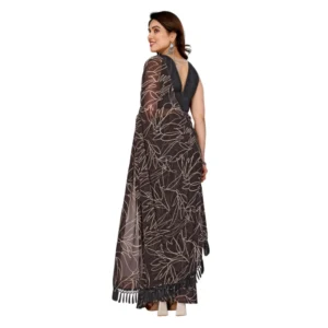 Generic Women’s Zalar Lace Georgette Printed Ready-to-Wear Saree With Unstitched Blouse 5.5 Mtr (Brown)