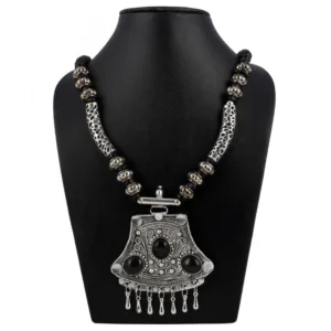 Tibetam Silver and Black Acrylic Beads Necklace